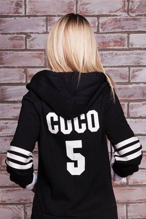 Lækker blød buksedragt - onesie i Sort farve med COCO 5 logo på ryggen og en fin hætte, 2 side lommer