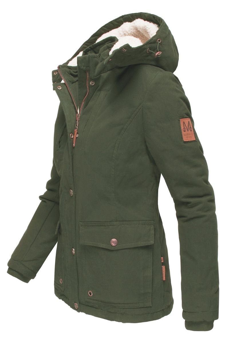 Fin vinter jakke i bomuld med plys foring og hætte