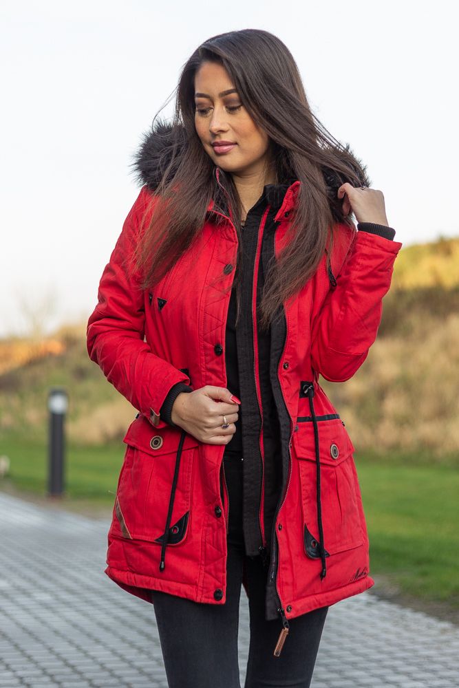Jakken lukkes med 2 lynlåse, tryk knapper og har mange flotte detaljer.