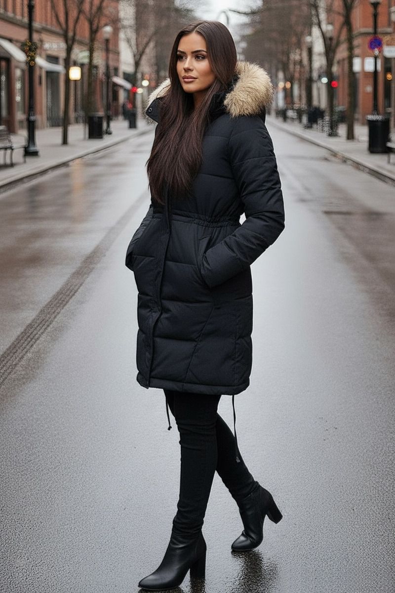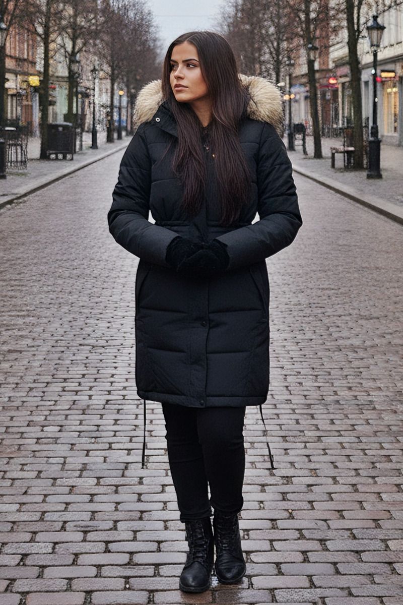 Dame vinterjakke med pels model Stavanger i sort