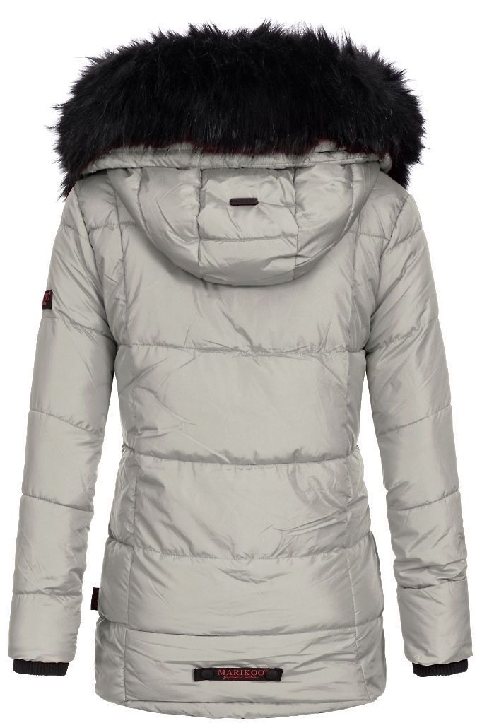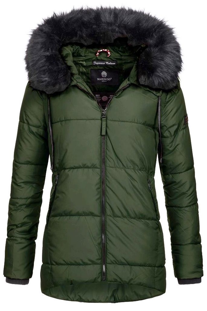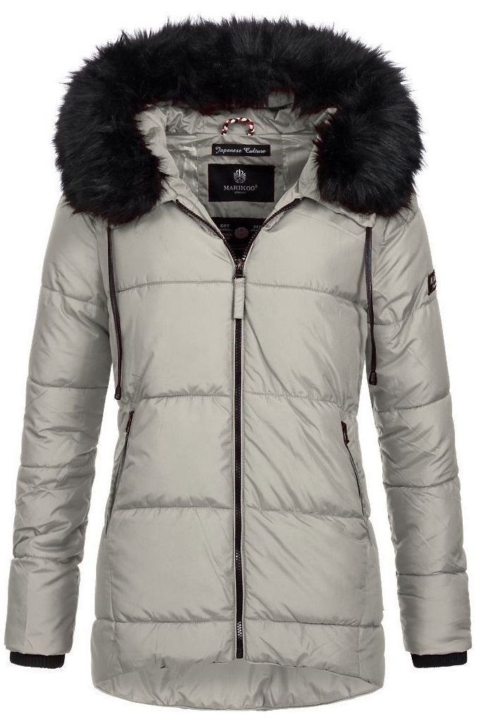 Flot dun / dyne jakke med side lommer og hætte med sort aftagelig pels