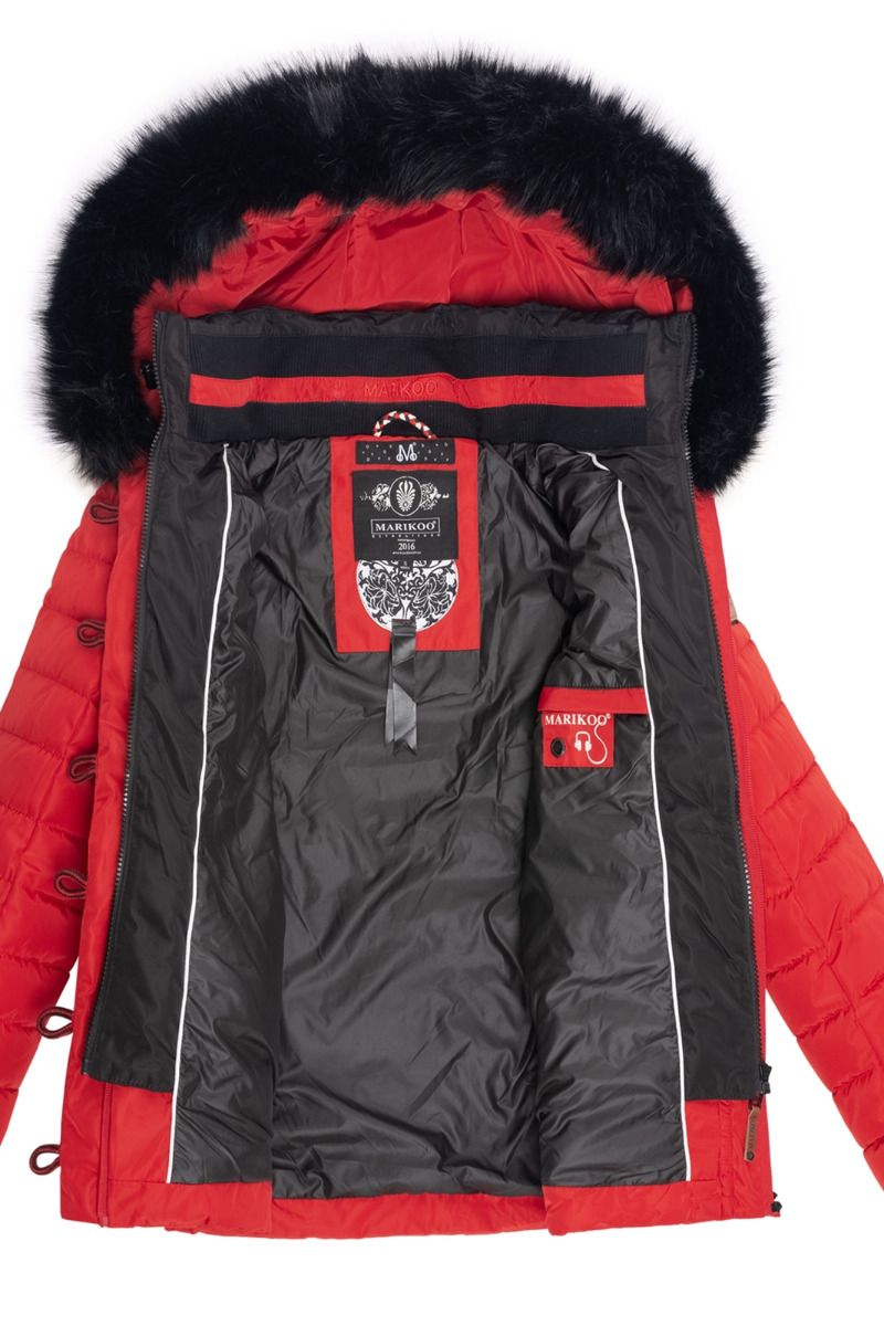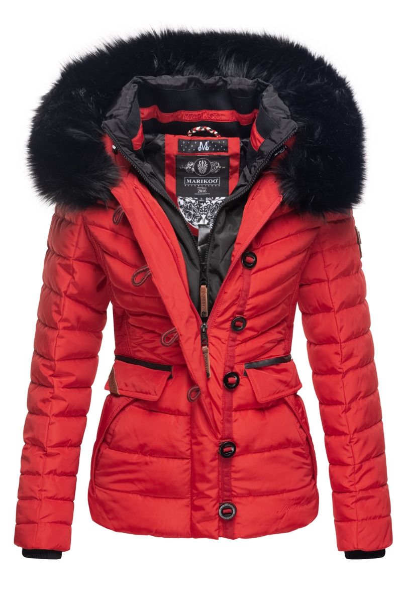 Kort Dame Vinterjakke med pels Yuna - Rød