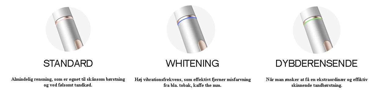 - Skift mellem 3 børstefunktioner
